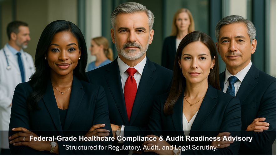 HCCP is led by senior executives with government, defense, and healthcare regulatory experience who specialize in audit readiness, compliance defense, and cybersecurity risk control for regulated healthcare organizations. Our leadership model applies federal-grade operational discipline and legally defensible compliance methodology to real-world healthcare environments.